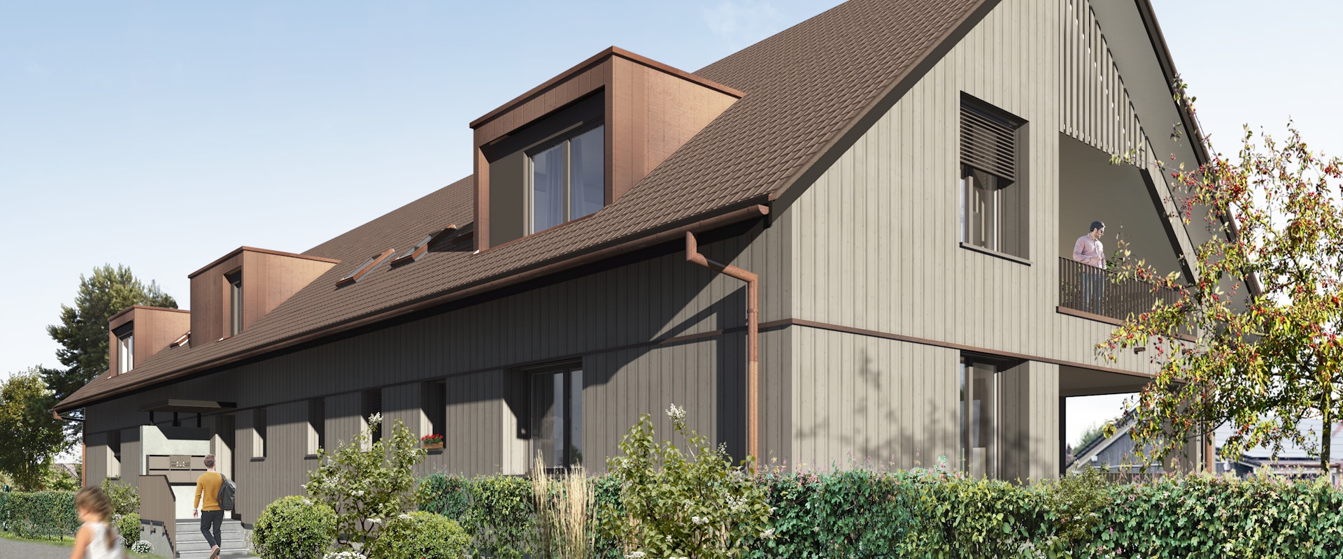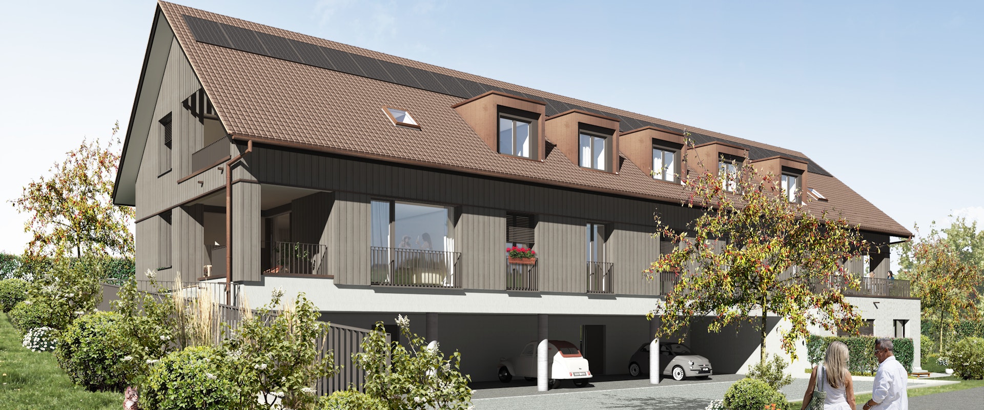 Zu jeder Wohnung gehört ein Balkon oder Sitzplatz mit einer Grösse von rund 8 m2 bis zu 24 m2 und ein Kellerabteil. Die Dachgeschosswohnungen verfügen zusätzlich über einen Estrich.